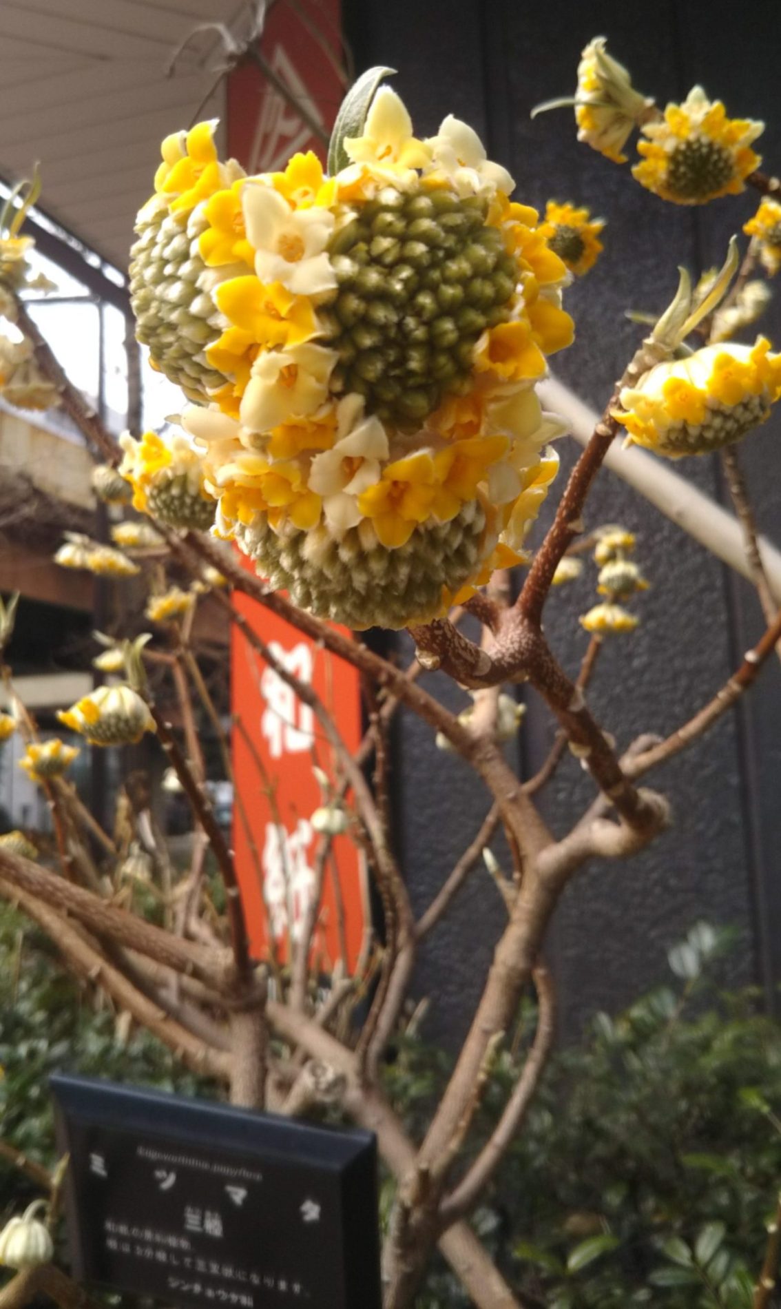 中央区日本橋にある、小津和紙本館の角、小津文化教室の入り口に、和紙の原料になる三椏(みつまた)が咲いていました。香りはなかったけれど、可憐な姿。今まで気が付かなくて、ごめんなさい。