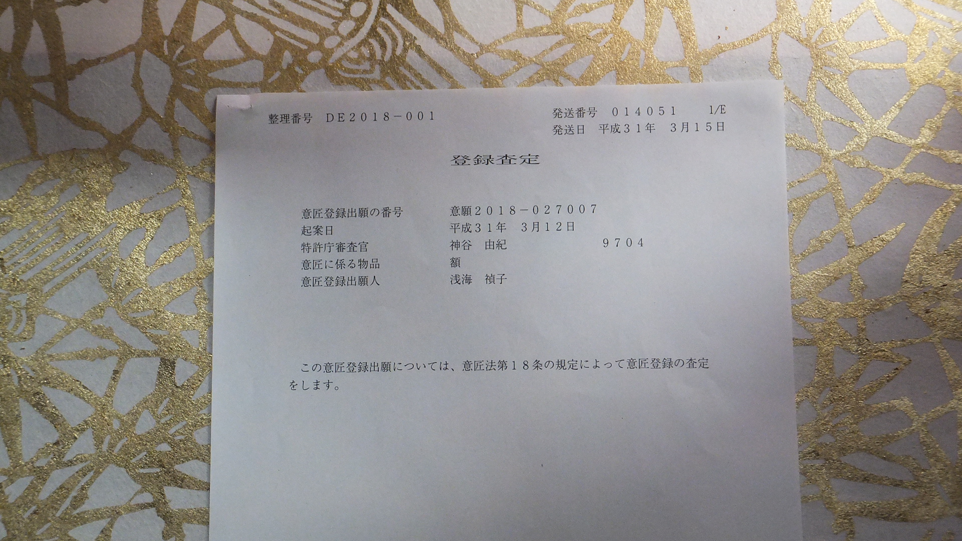 無事に意匠登録が完了し、登録料も納付し終えた今、意匠登録は2018年の夏の思い出になりました。
