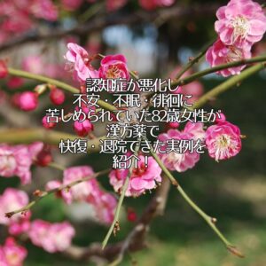 | 第1回 | 🌻 【認知症実例】不安・不眠・徘徊に苦しむ82歳女性が漢方薬「加味帰脾湯」で劇的回復! | https://kizuna-iyashi.com/2024/02/02/homemade-256/ |