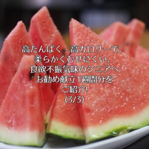 高たんぱく・高カロリーで、柔らかくむせにくい、食欲不振気味のシニアへお勧め献立1週間分をご紹介!(2/3)
